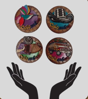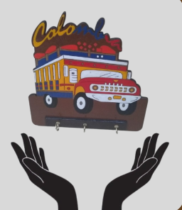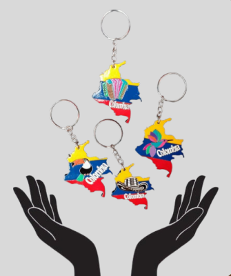 Llaveros colombianos elaborados en madera y metal, con diseños coloridos y detalles precisos que reflejan nuestra identidad cultural.