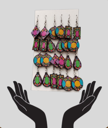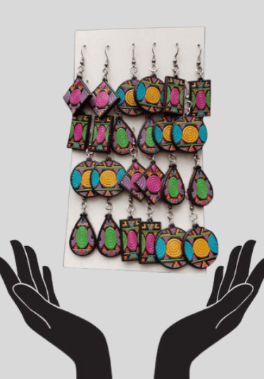 Aretes colombianos en madera y metal, ligeros, precisos y llenos de color. Diseños inspirados en nuestra cultura para complementar cualquier estilo.